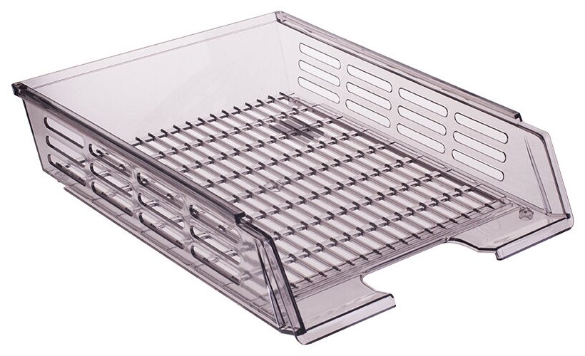 Лоток для бумаг горизонтальный СТАММ, с пазами, тонированный серый, 98057 информация: