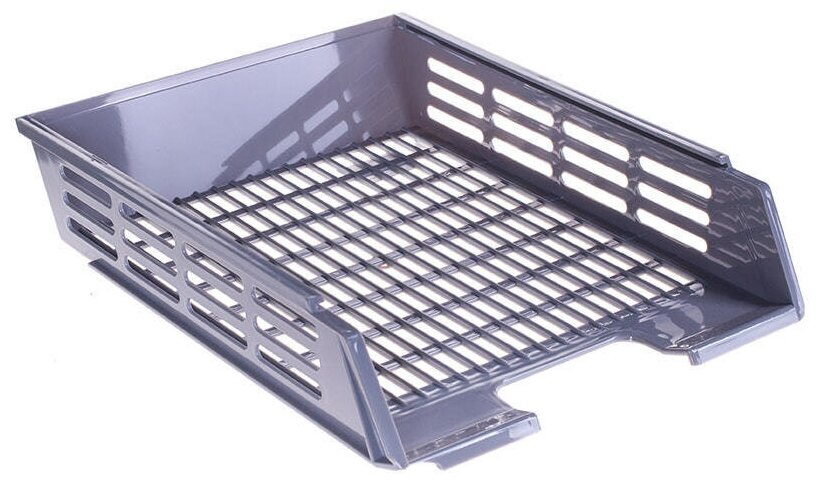Лоток для бумаг горизонтальный СТАММ, с пазами, серый, 75533 информация: