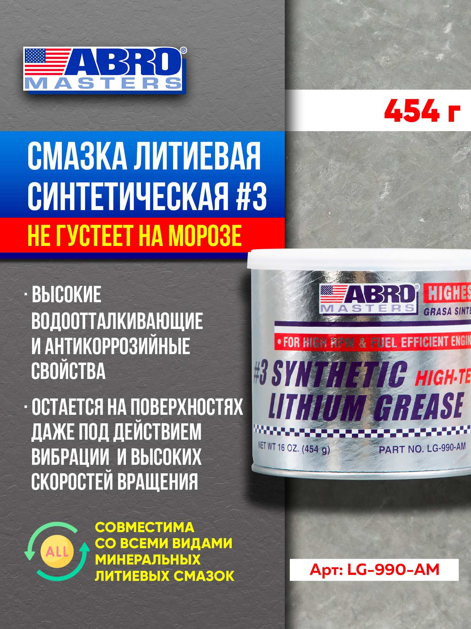 Смазка Литиевая Синтетическая #3 Abro Lg-990 ABRO арт. LG990AM информация: