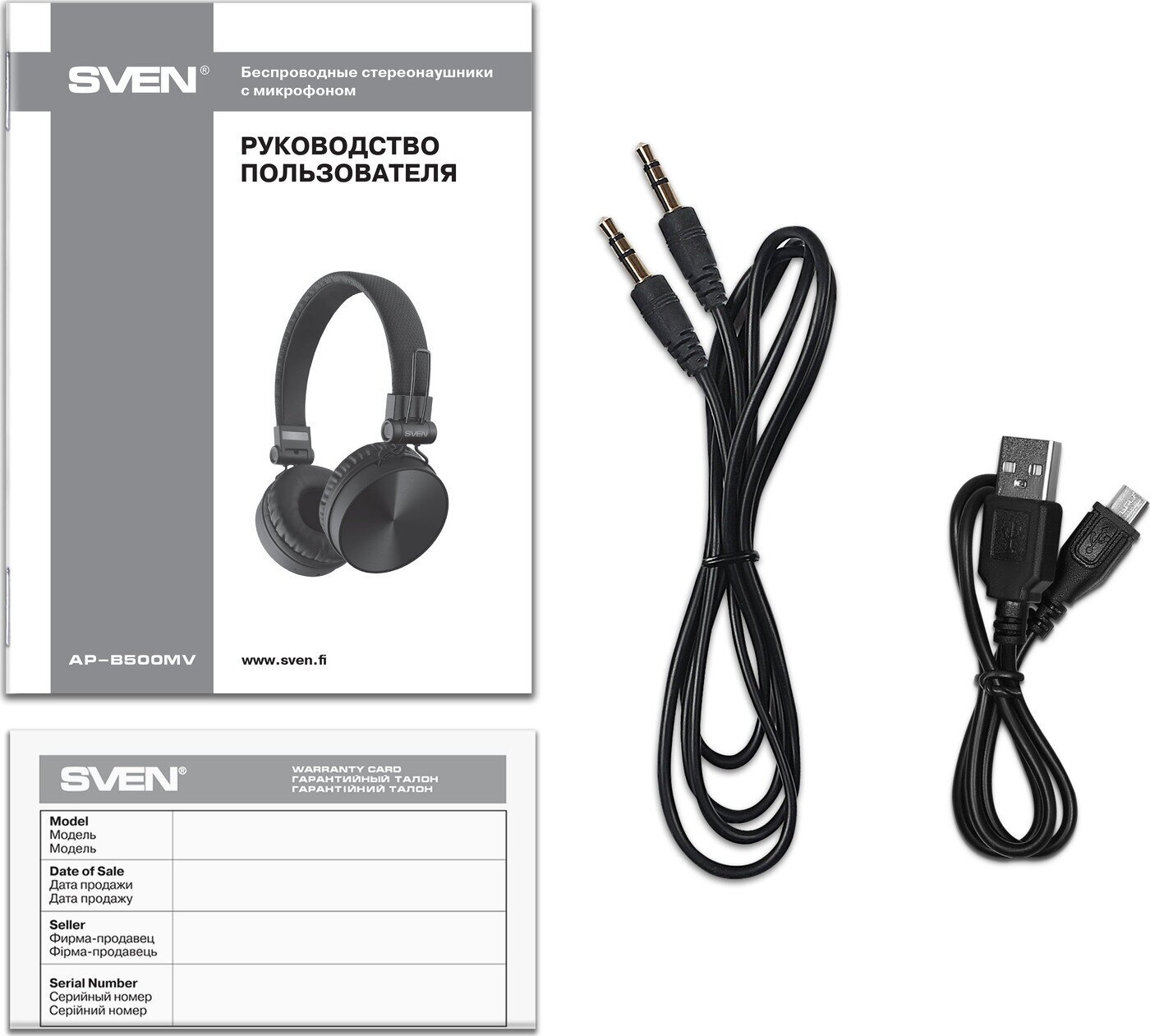 Беспроводные наушники SVEN AP-B500MV, mini jack 3.5 mm, черный