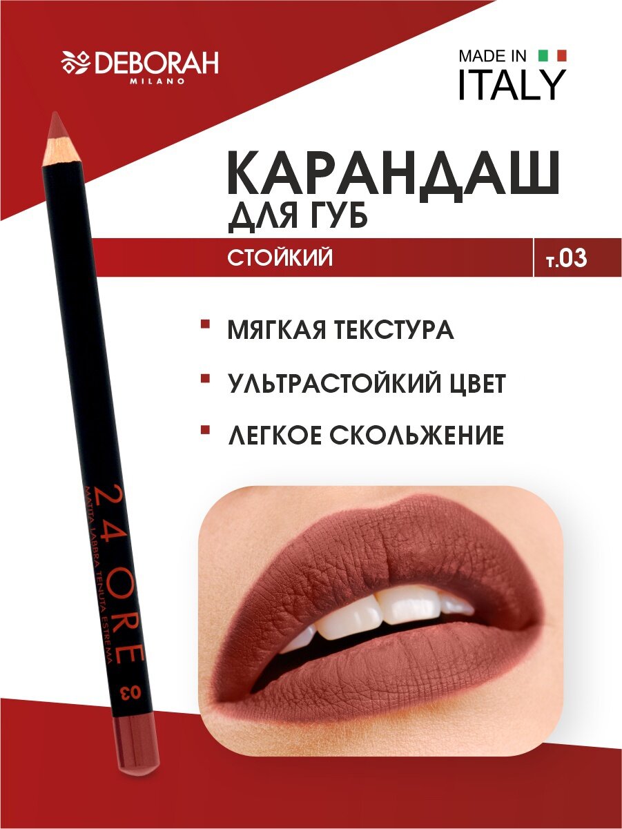 10 цен на DEBORAH Карандаш для губ стойкий 24 ORE LONG LASTING LIP PENCIL тон 03 кирпичный 1.5г.