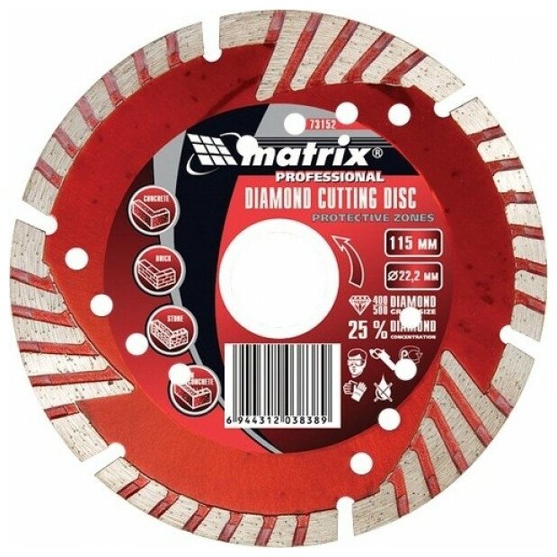 Диск алмазный отрезной сегментный с защитными сект, 180 х 22,2 мм, сухая резка// Matrix информация: