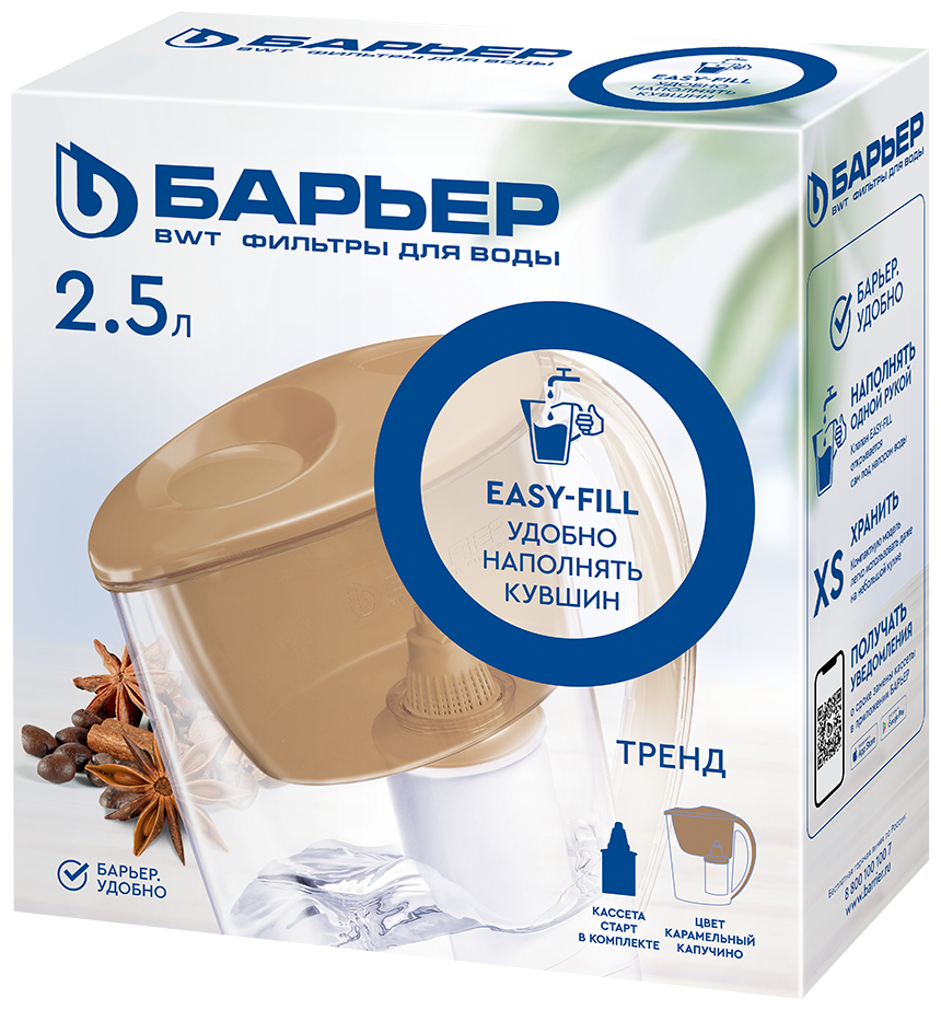 Фильтр-кувшин для очистки воды барьер Тренд 2 5 л цвет карамельный капучино 740 ₽