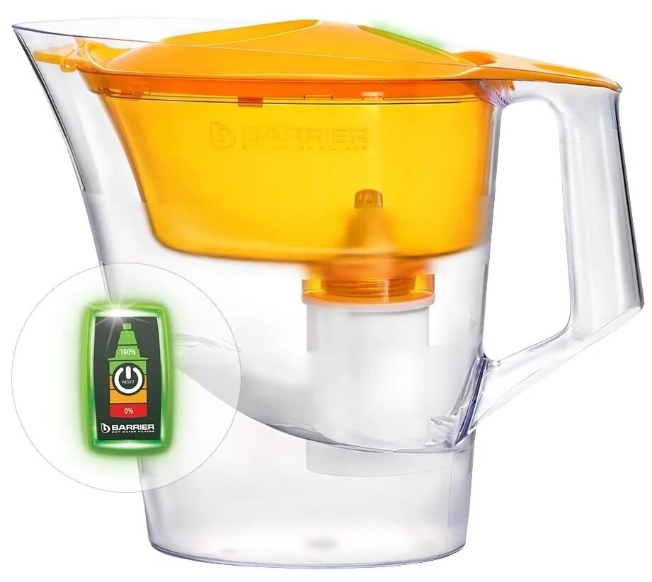 Фильтр-кувшин для очистки воды барьер Чемпион c электронным индикатором замены кассеты Опти-Лайт, 4 л, цвет сочный апельсин