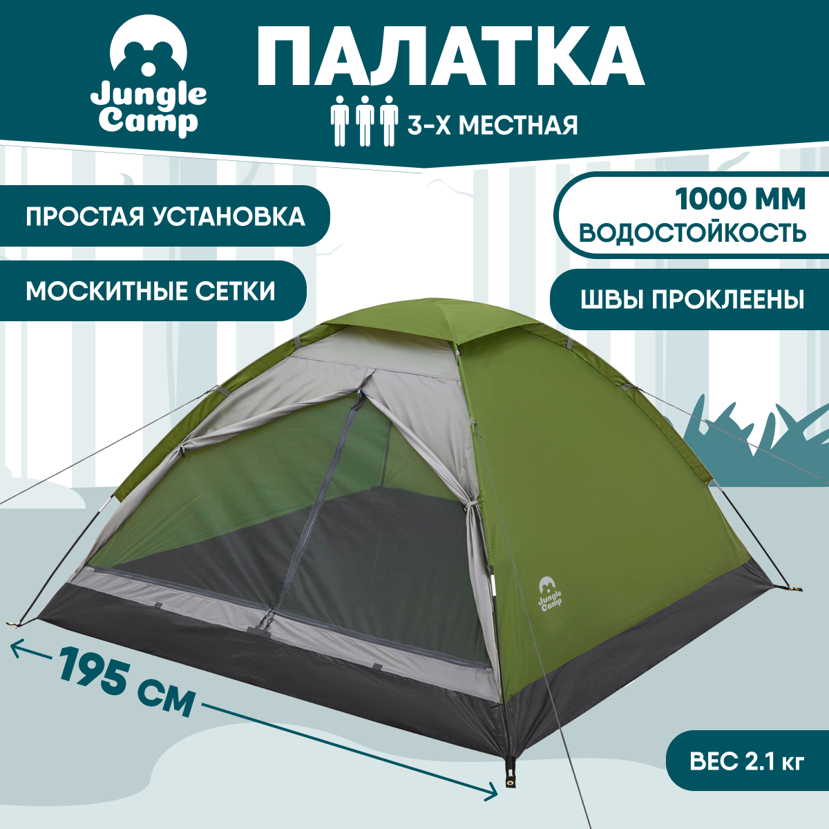 Отзывы на Палатка трёхместная JUNGLE CAMP Lite Dome 3, цвет: зеленый/серый