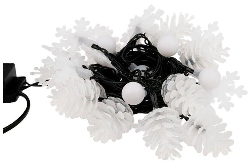 Светодиодная гирлянда ШарикиСнежинкиЕлочки 8 режимов 4.4м 30 Led, тёмно-зелёный провод, цвет свечени