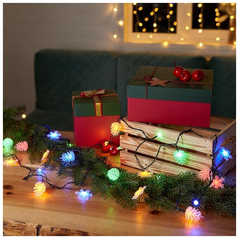 Светодиодная гирлянда NEON-NIGHT "Шарики-Снежинки-Елочки" 4.4 м, 8 режимов, 30 разноцветных светодиодов, тёмно-зелёный провод