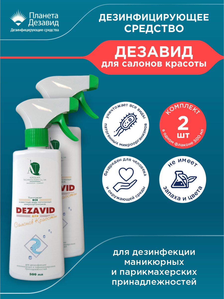 10 цен на Комплект Дезинфицирующее средство Дезавид для салонов красоты 500 мл. спрей х 2 шт.