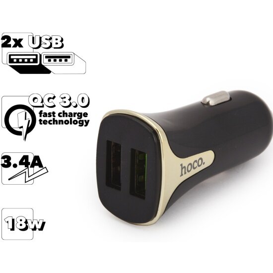 Автомобильное зарядное устройство HOCO Z31 Universe 2xUSB, QC 3.0, 3.4A, 18W, черный информация: