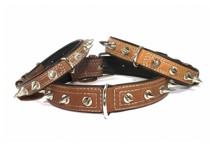 10 цен на Ошейник COLLAR двойной с шипами коричневый 35мм * 48-63см