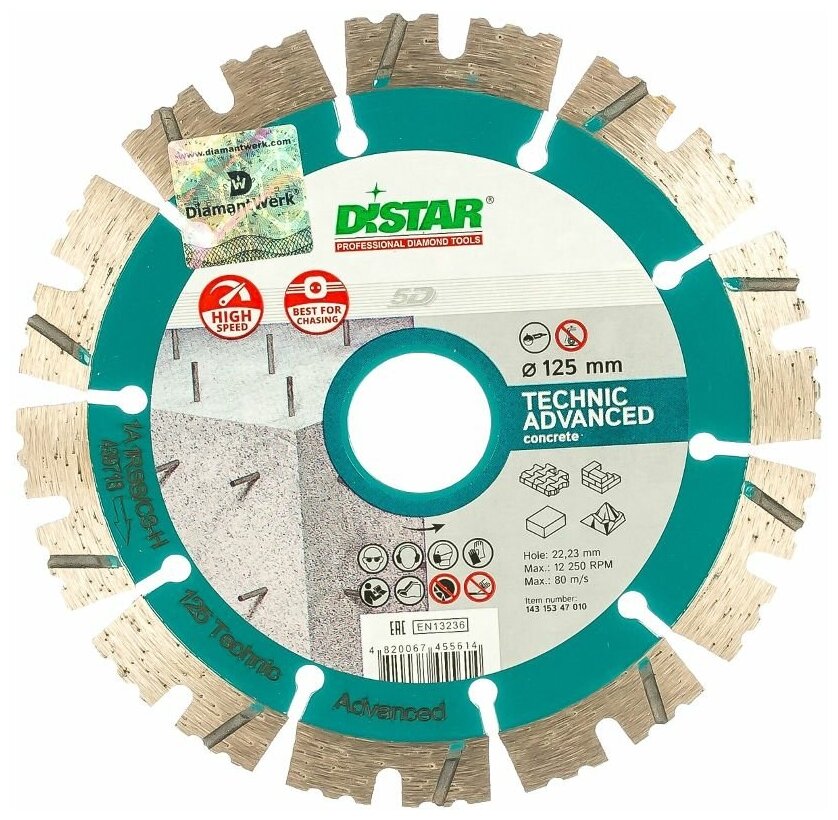 Диск алмазный сегментный по армированному бетону Distar Technic Advanced 125мм информация: