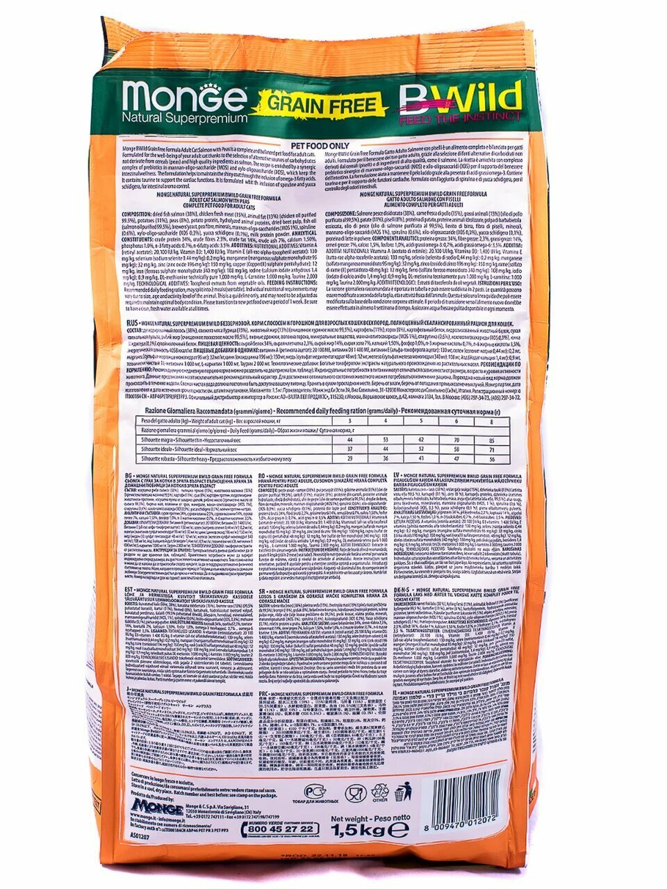 Отзывы на Сухой корм для кошек Monge BWILD Feed the Instinct, беззерновой, с лососем, с горошком 1.5 кг