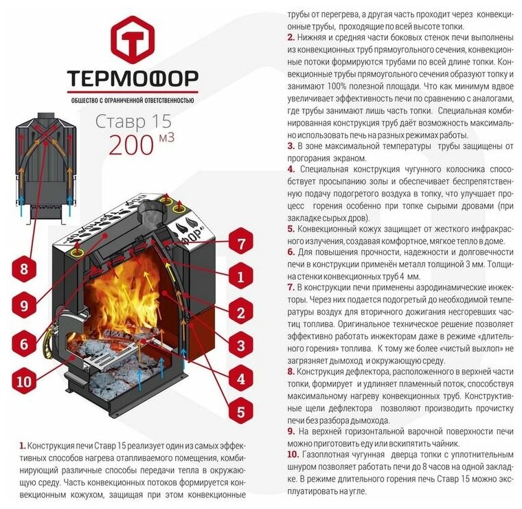 Печь отопительная термофор Ставр 15 (200 м.куб.)(дрова+уголь) информация: