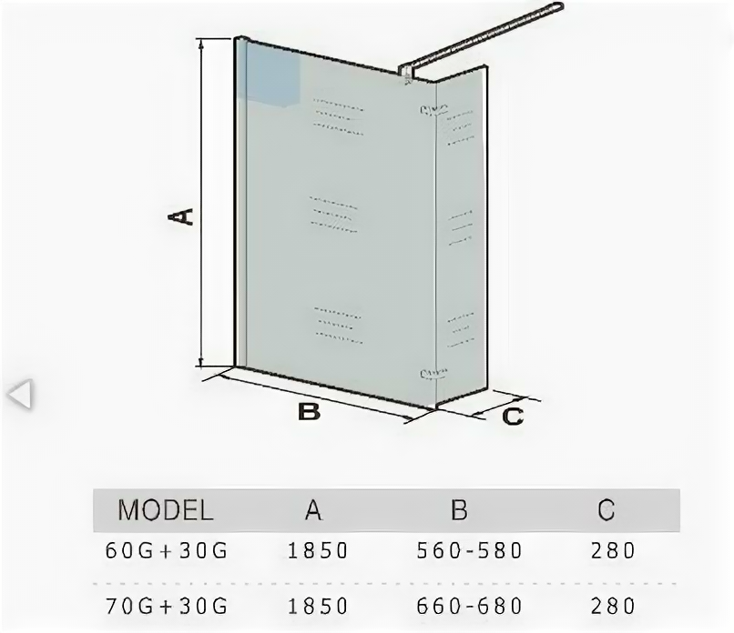 Душевая перегородка WeltWasser WW400 70G+30G 70+30х185 см прозрачное . информация: