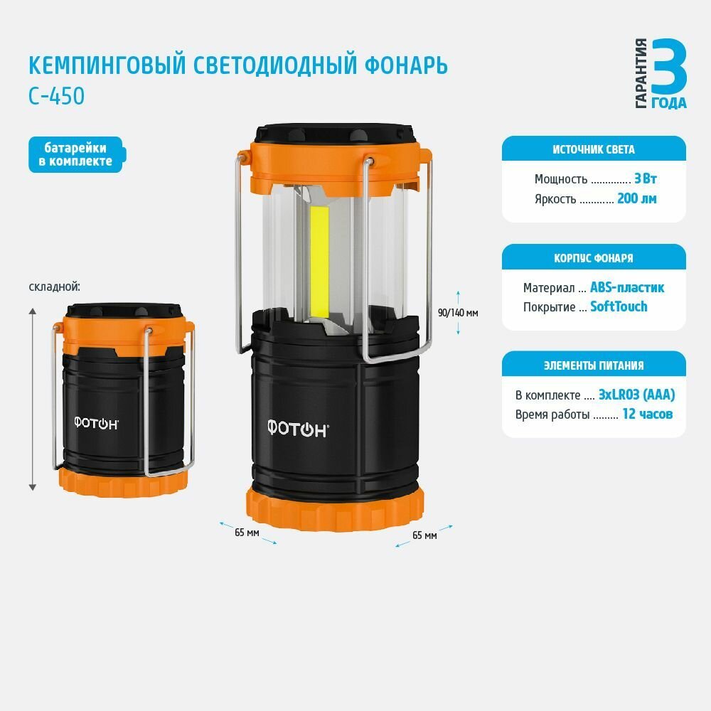 Фонарь кемпинговый Фотон 3 Вт LED 3хААА информация: