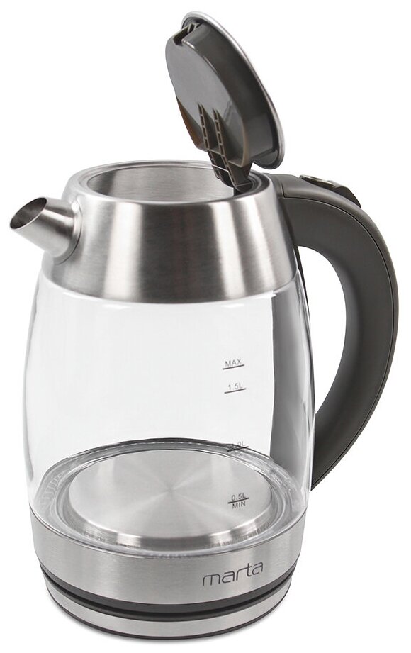 Электрический чайник MARTA MT-KT4655A черный стеклянный с заварником, 1.8 л