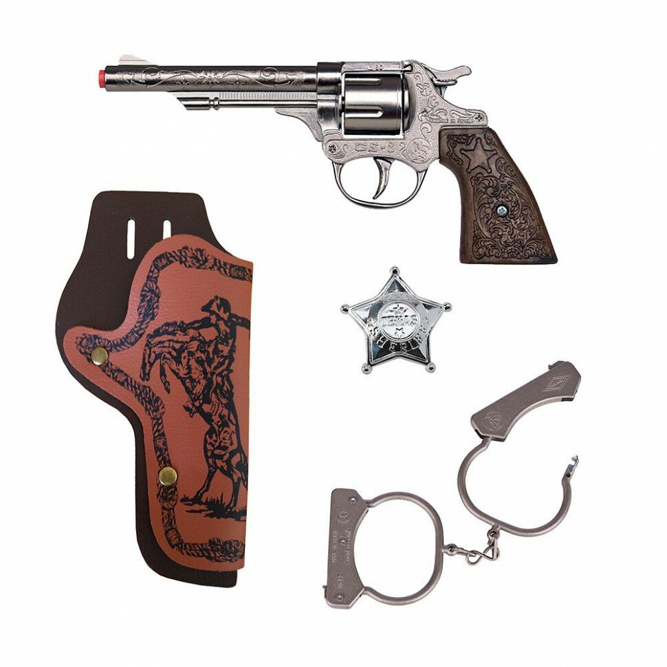 Ковбойский набор Дикий запад с револьвером 20.5 см, кобурой, наручниками и звездой шерифа информация: