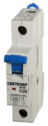Выключатель СВЕТОЗАР автоматический, 1-полюсный, ″С″ (тип расцепления), 25 A, 230 / 400 В