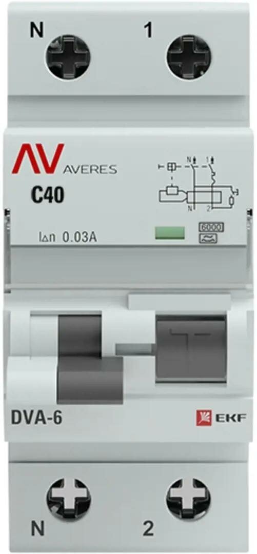 Автомат дифференциальный DVA-6 1P+N 40А (C) 30мА (A) 6кА AVERES | код rcbo6-1pn-40C-30-a-av | EKF ( 1шт. )