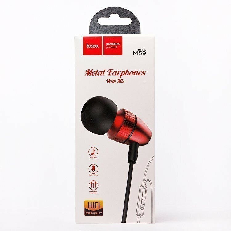 Наушники внутриканальные HOCO M59, Magnificent, микрофон, кнопка ответа, кабель 1.2м, цвет: красный