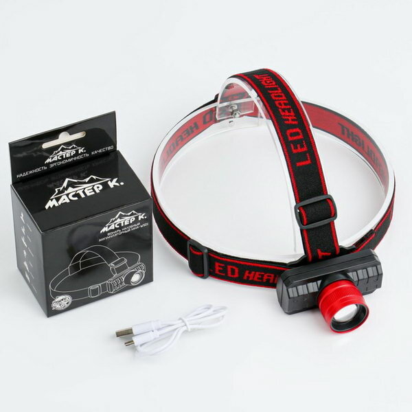 Фонарь налобный Мастер К аккумуляторный, "Мастер К", 5 Вт, 140 Лм, XPE, от usb, 7x5x3,5 см (4486387)