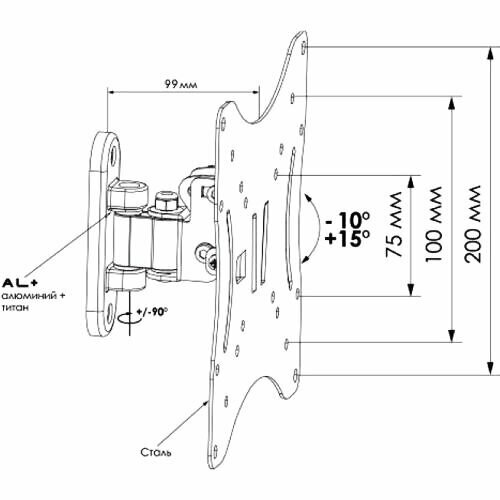 10 цен на Кронштейн для телевизора Algenium LS 51-21S с наклоном и поворотом до 25кг 17..42 дюймов VESA 75-200мм чёрный