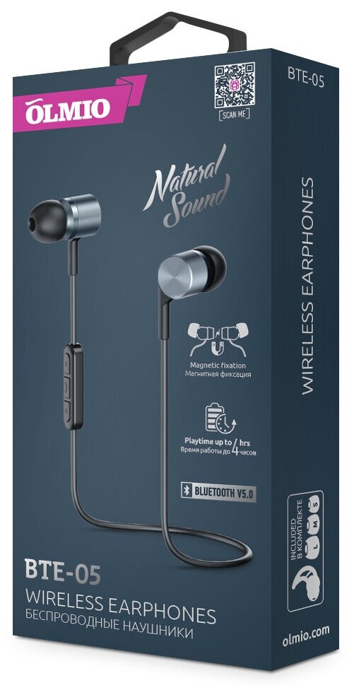 Наушники внутриканальные беспроводные Olmio BTE-05, Bluetooth 5.0, черные