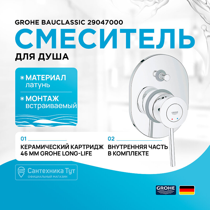 Смеситель встраиваемый для ванны с душем GROHE BAUCLASSIC (29047000) 15 710 ₽