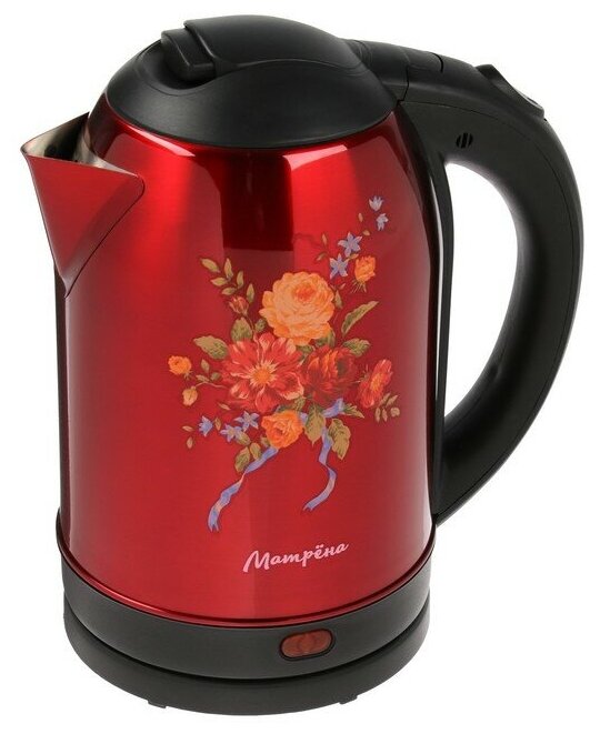 Матрёна Чайник электрический "Матрёна" MA-005, металл, 2 л, 1500 Вт, красный с рисунком "Хохлома"