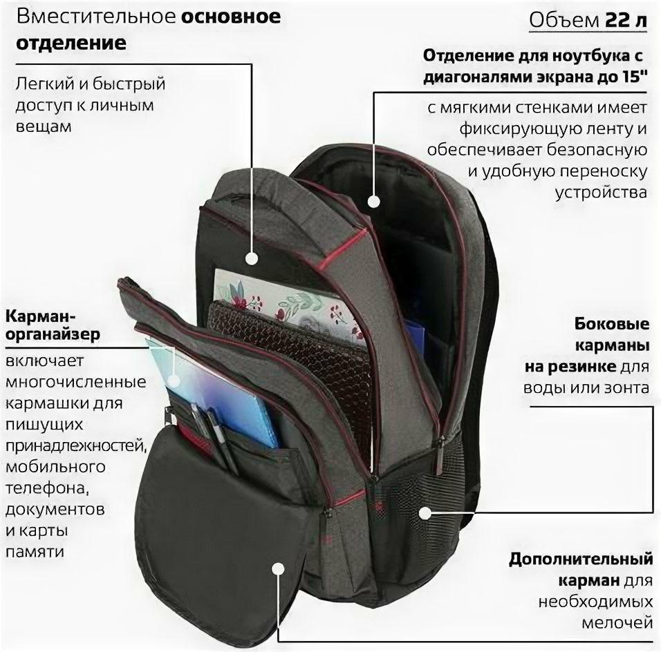 10 цен на BRAUBERG Рюкзак BRAUBERG BOSTON 22 л темно-серый