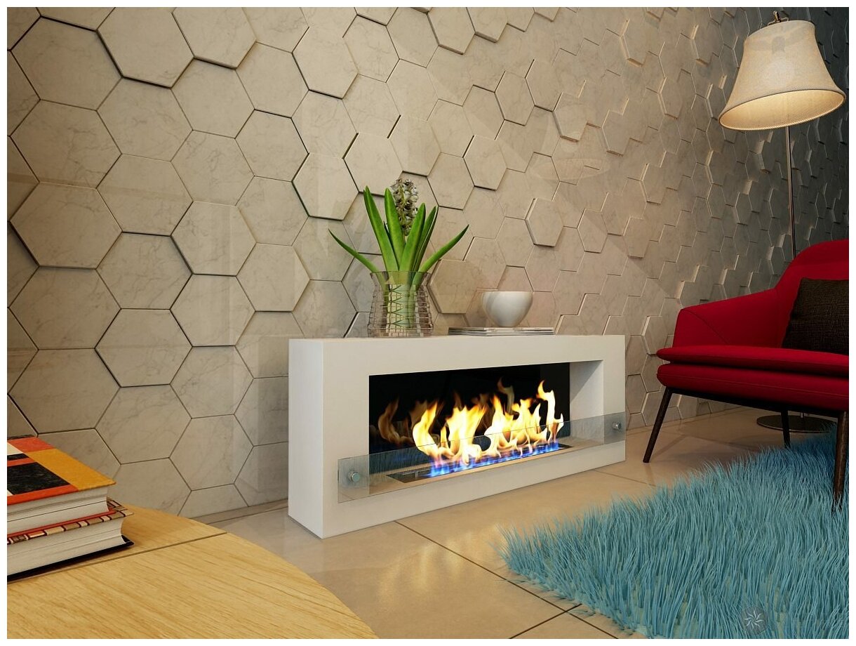 Биокамин напольный ZeFire Constant 900 белый со стемалитом для дома и квартиры