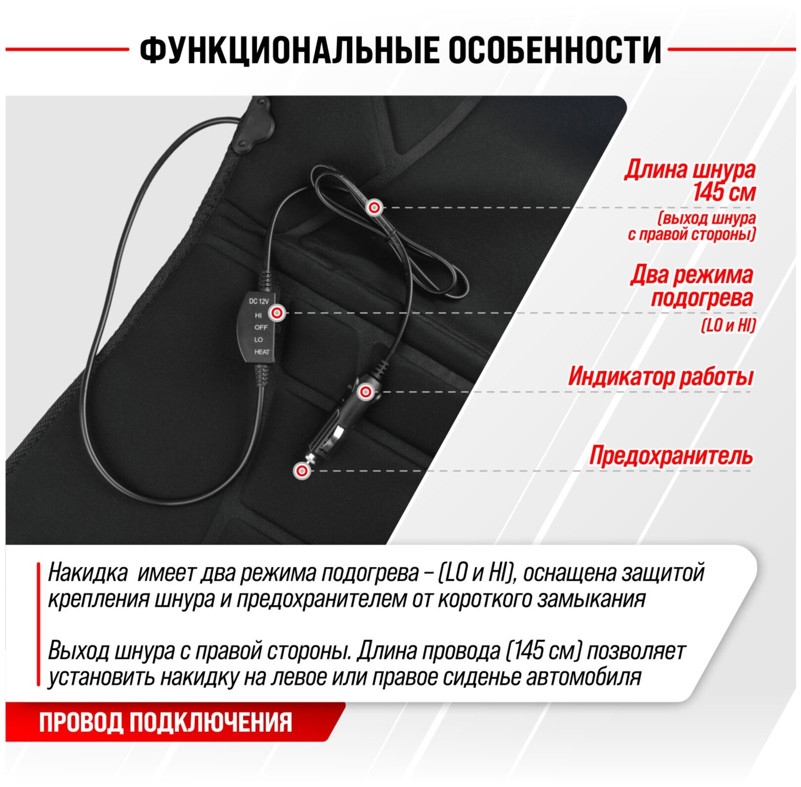 Подогрев сидений со спинкой черный полиэстер 118х53 см, с регулятором (2 режима), S02201002 2 067 ₽