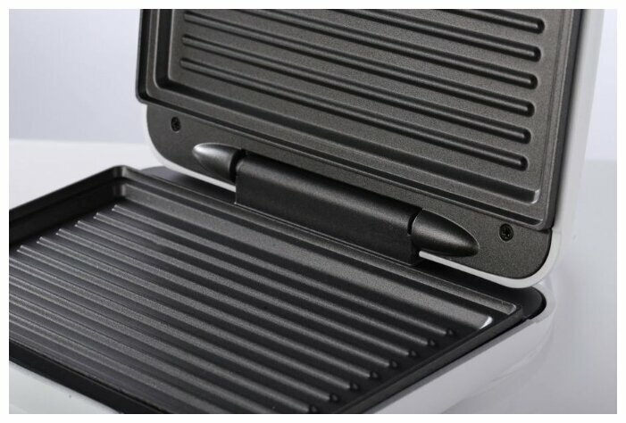 Гриль электрический Gorenje SM701GCW, 700 Вт, антипригарное покрытие пластин, рифленая поверхность, белый