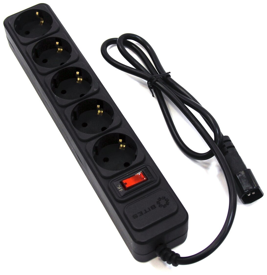 Сетевой удлинитель 5bites SP5B-110U 5S, 5 розеток, 1 м, 10 А, 3х0.75 мм2, с выкл., черный