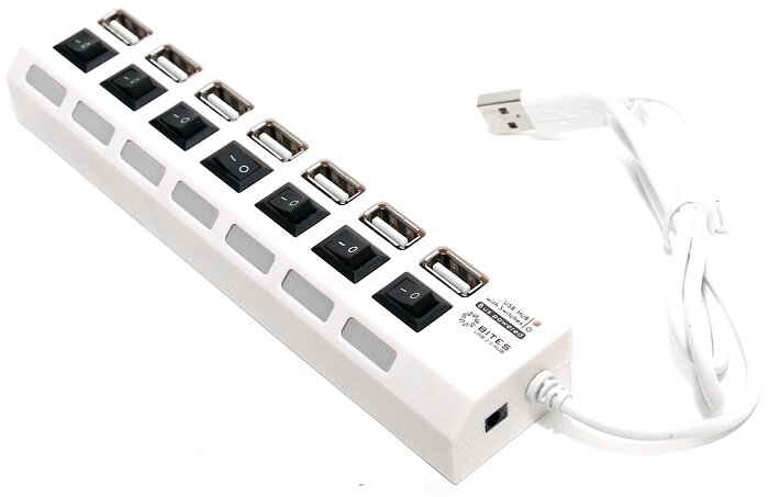 Разветвитель USB 5Bites HB27-203PWH хаб - концентратор 7 портов USB2.0 + выключатели + блок питания линейка - белый