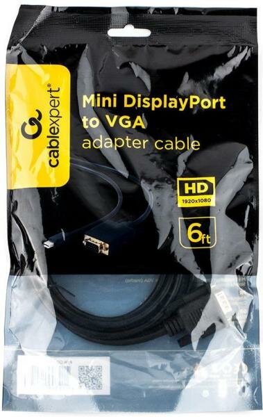 Кабель mDP-VGA Cablexpert, 20M/15M, 1.8м, черный, позол.разъемы, пакет