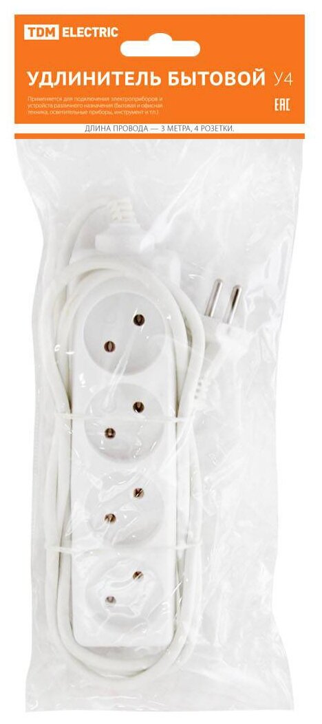 Отзывы на Удлинитель электрический TDM Electric SQ1303-0211 4 розетки 2х0.75, 3 м