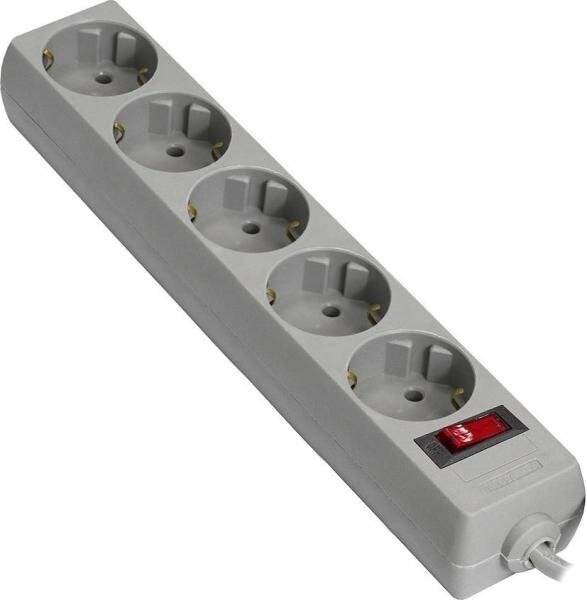 Сетевой фильтр ExeGate EX285799RUS EC-5-3G (5 евророзетки с заземлением, 3м, защита от перегрузки, выключатель с подсветкой, серый)
