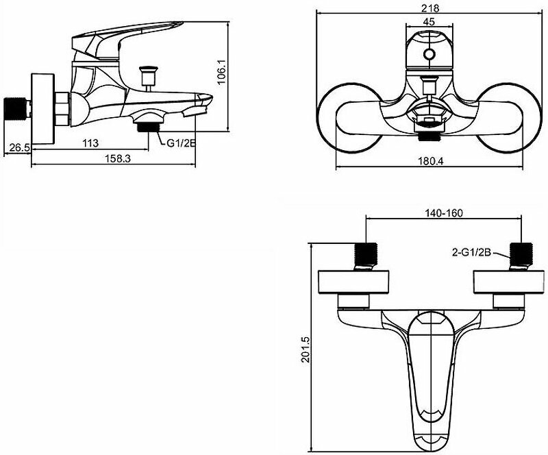 | Длина излива | 158 мм |