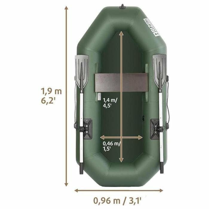 Лодка Бриз 190 с веслами, цвет зеленый Тонар 6852863 .