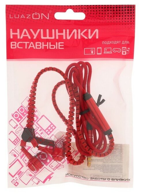 Наушники Luazon Home VBT 1,10 "Молния", вакуумные, микрофон, красные
