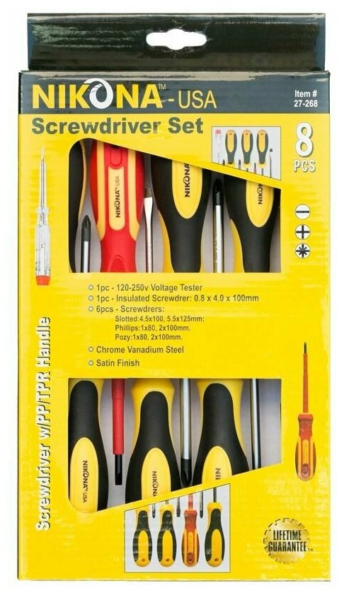 Отзывы на Набор отверток NIKONA с Тестером напряжения (125-250V) и с изоляцией (8пр) 27-268