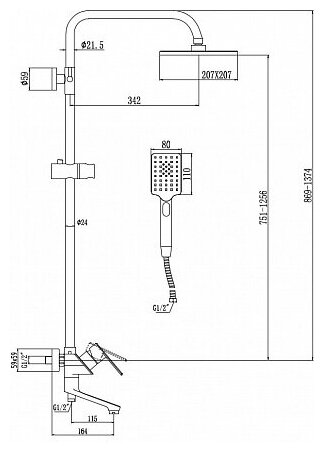 Душевая стойка OASIS с тропическим душем с смесителем и лейкой SUS2014МSt_Cha.