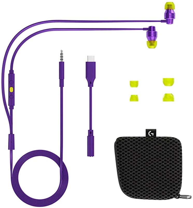Гарнитура игровая Logitech G333, для компьютера и игровых консолей, вкладыши, фиолетовый / желтый [981-000936]