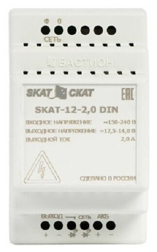Источник питания SKAT-12-2.0 DIN 12В 2,3А АКБ внешн. 1х7-17Ач ток заряда 2,0Iнагр. SKAT-12-2.0 DIN информация: