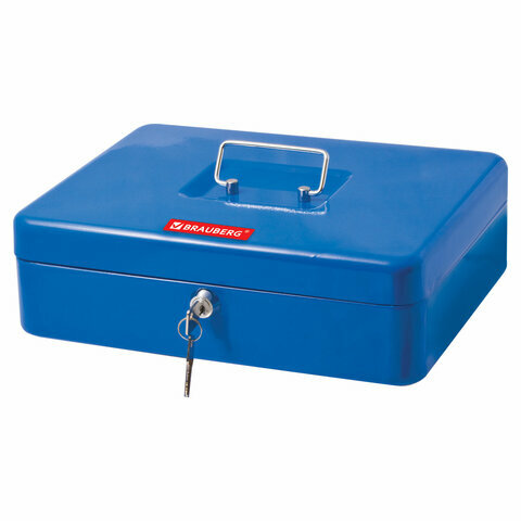 Ящик для денег, ценностей, документов, печатей BRAUBERG, 90х240х300 мм, с ключевым замком, синий