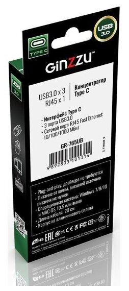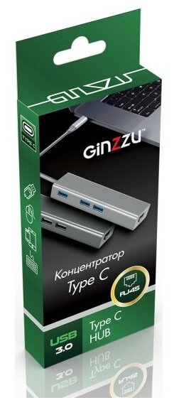 Хаб USB Ginzzu GR-765UB USB Type-C - 3xUSB 3.0/RJ45 Black 17