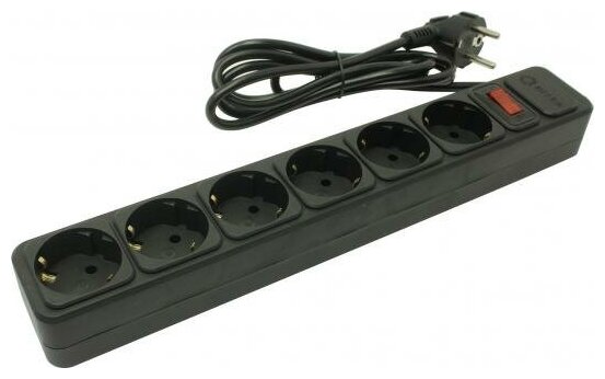 Сетевой фильтр 5bites SP6B-118 6S, 6 розеток, 1.8 м, 10 А, 3х0.75 мм2, с выкл., черный 5bites