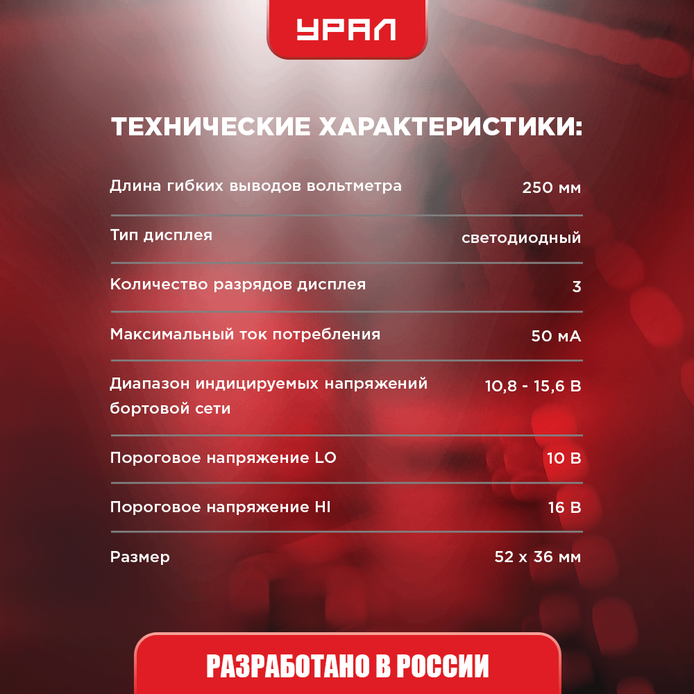 Вольтметр URAL DB красный, автомобильный