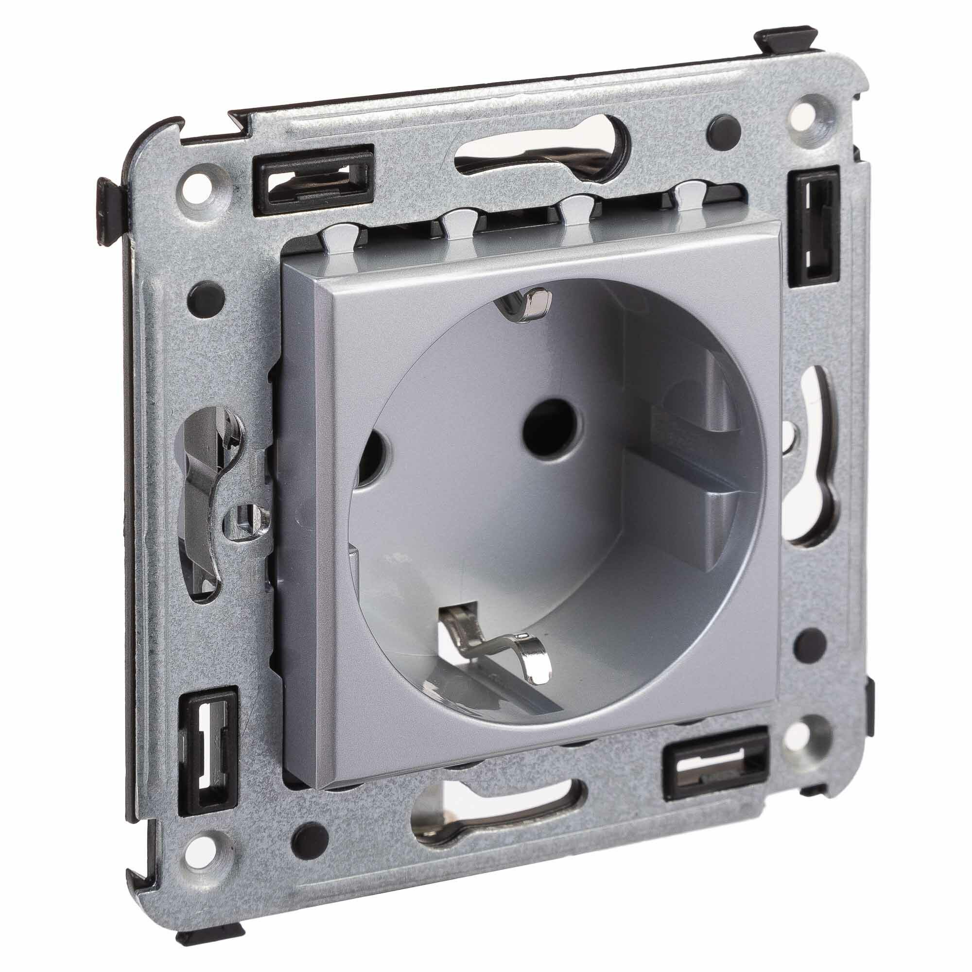 Розетка 1-м СП 2мод. Avanti "Закаленная сталь" 16А 2P+E защ. шторки сер. DKC 4404003 информация: